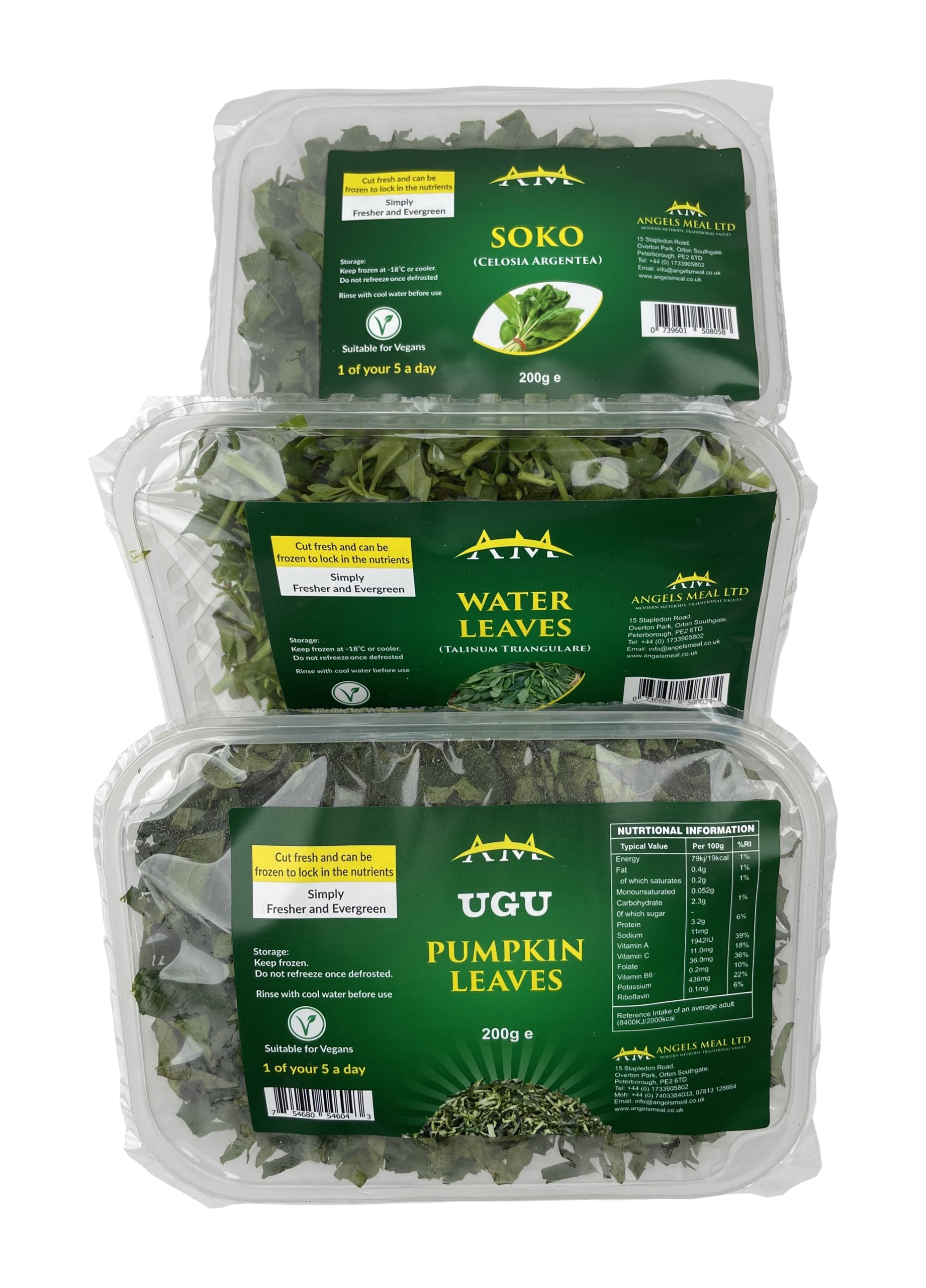 Fresh Soko, Washed, Spinned dry, Cut and Packed in Trays, ready to use. You can freeze them to use later.