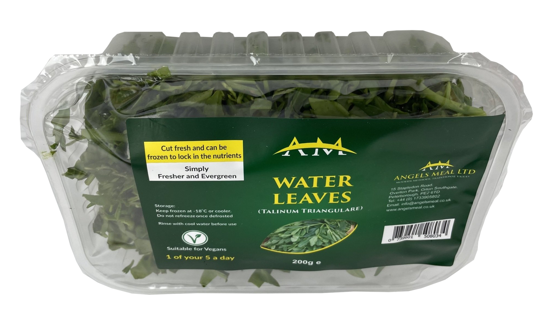 Fresh Water Leaves, Washed, Spinned dry, Cut and Packed in Trays, ready to use. You can freeze them to use later.